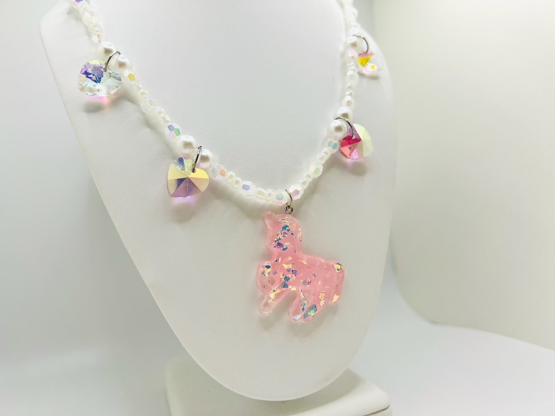 Crafted with lightweight, kid-friendly materials, this necklace is comfortable to wear and easy to pair with casual outfits or dressy occasions. The colorful beads and playful charm details make it a fun and stylish addition to any jewelry collection.