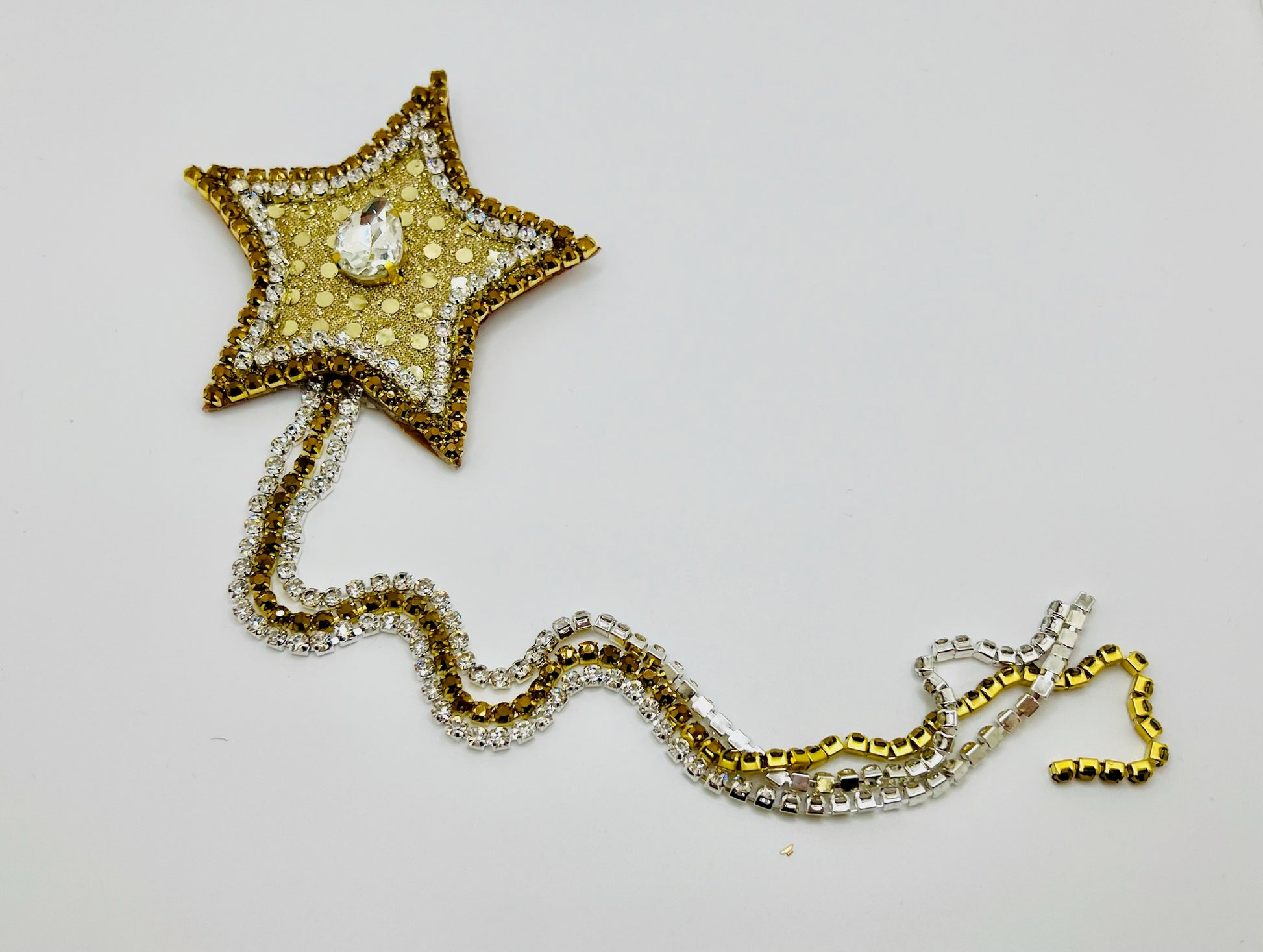 This exquisite embroidered embellished star brooch is a statement piece that adds a touch of elegance to any outfit. Featuring intricate hand-embroidered details, the star is adorned with shimmering beads, delicate sequins, and subtle metallic threads, creating a stunning, multidimensional effect.